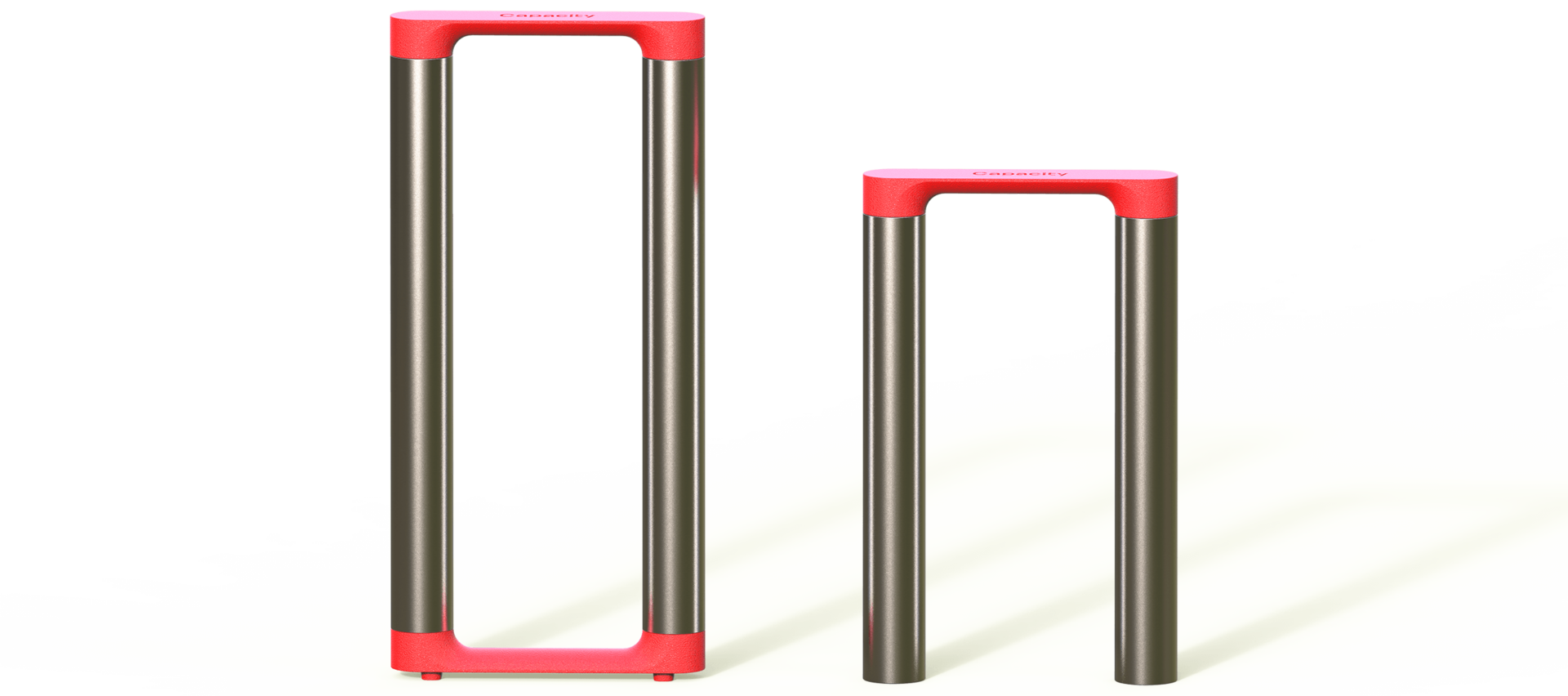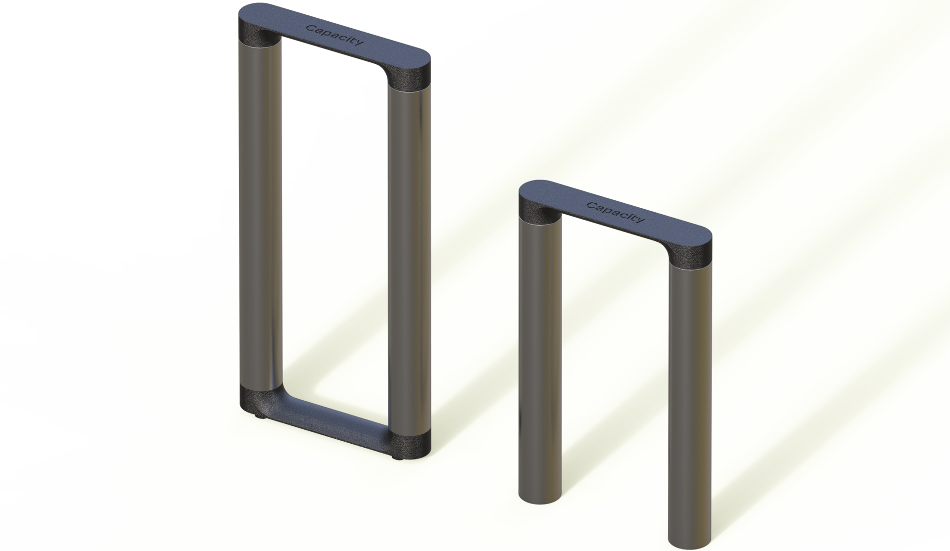 The bike stand is made up of two posts and a cast iron coupling. The posts create a minimum friction surface with the wheel frame, thus enabling it to be securely supported and locked. The stand dimensionally corresponds to the Capacity System product module in a grid of 400 x 400 mm.
