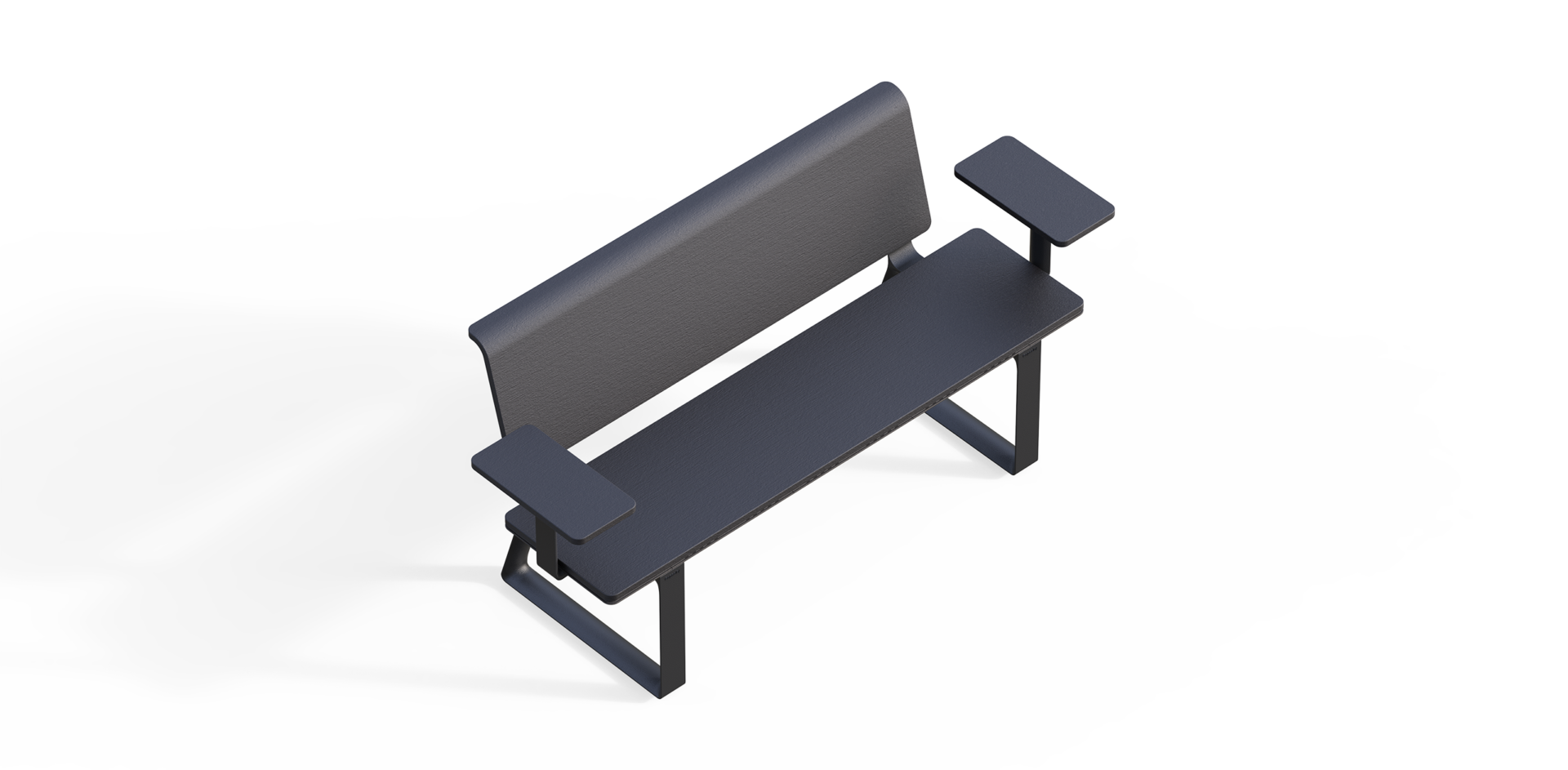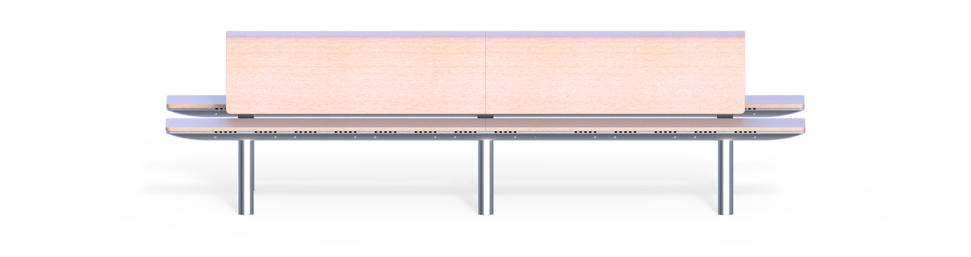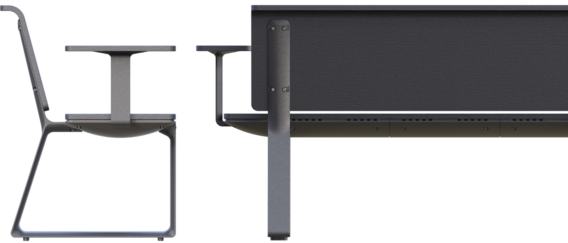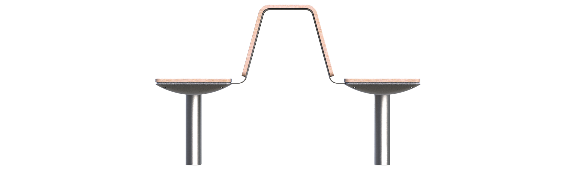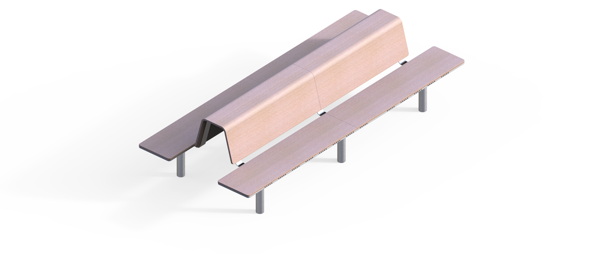 Lavičky lze spojit opěrkou v sestavu dvousměrného posezení, například pro dopravní nástupiště.