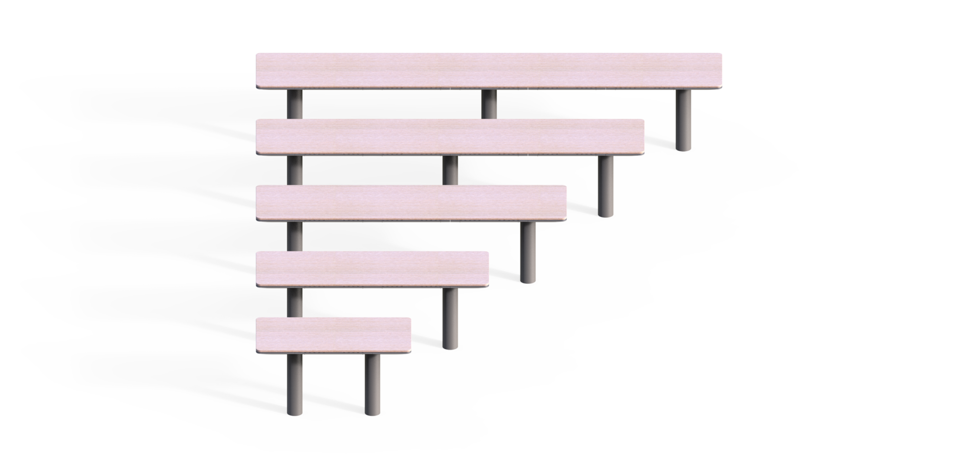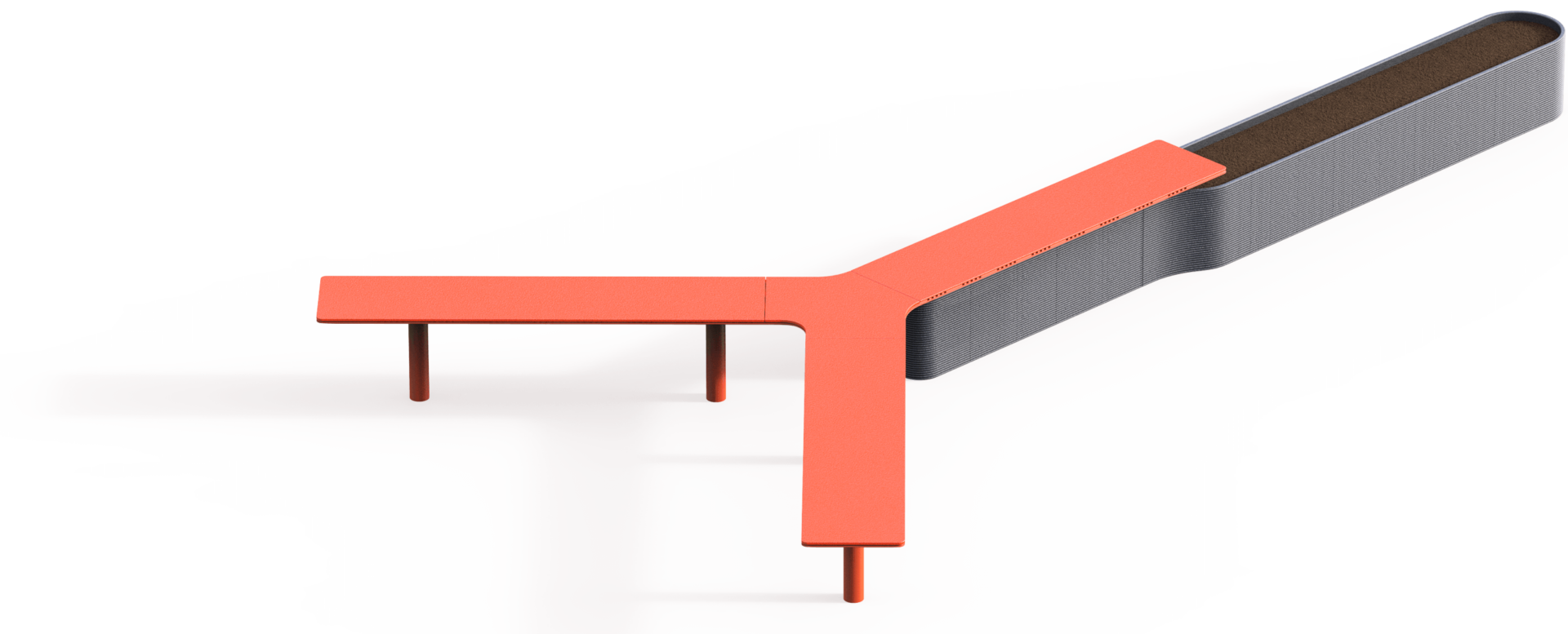 Systém stavebnice umožňuje sestavu laviček téměř libovolných tvarů a délek. Modularita je základní stavební princip všech našich produktů.